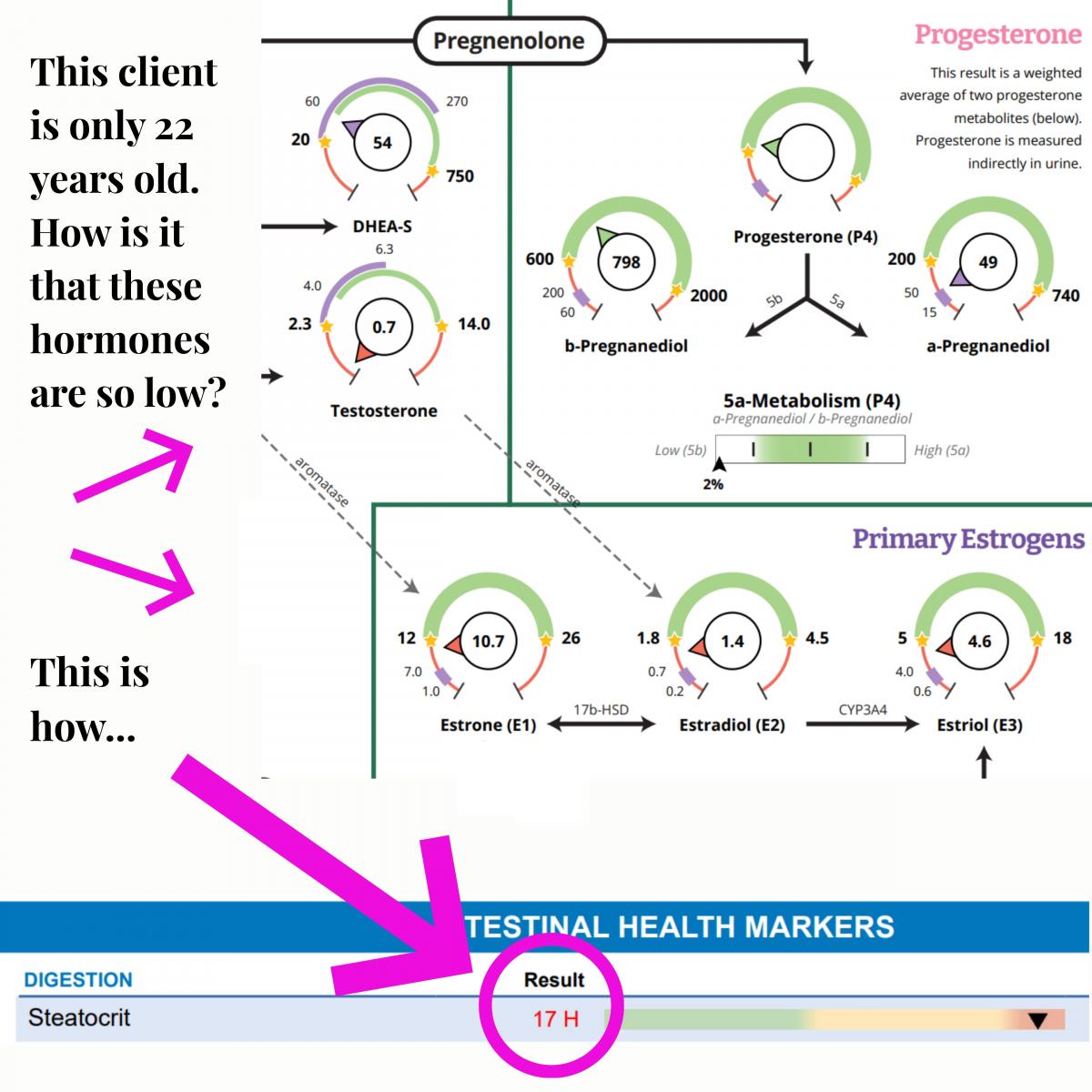 results prior to her gut panel results and when I saw these hormone levels (or lack thereof), it took me aback. This isn’t normal.